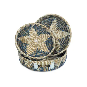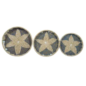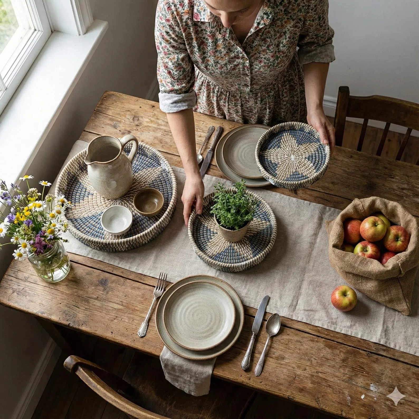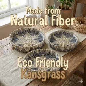 The Radiant Starburst is handwoven from natural fibers. Hang it as warm kitchen wall art; lift it down to serve when guests arrive—one piece, two rituals — centering the room, then gathering the table.